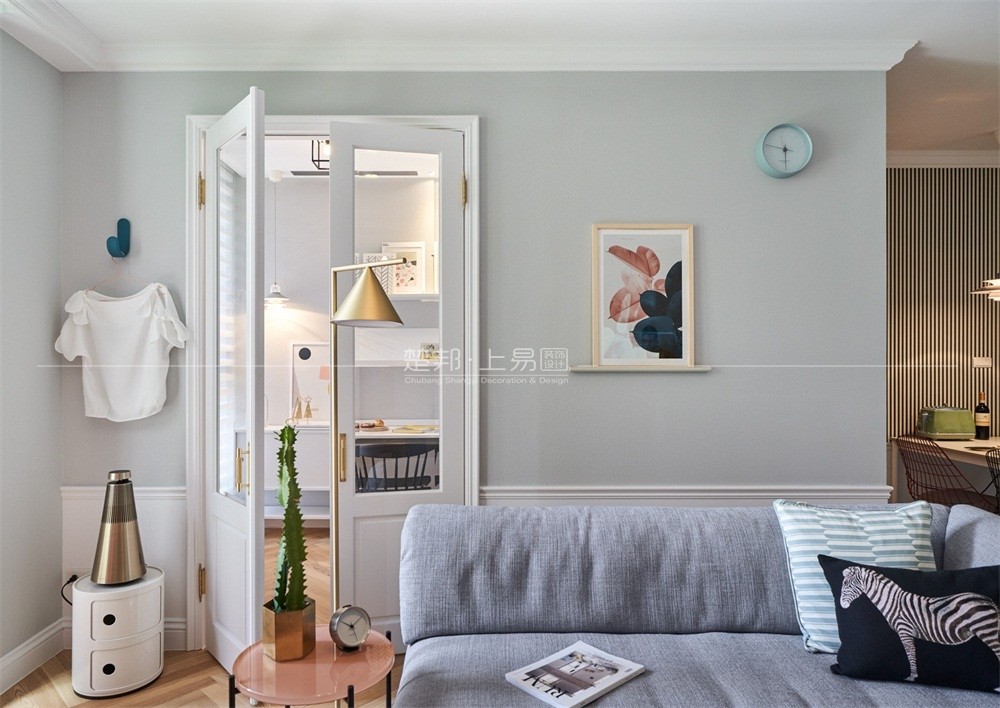 屋主本身喜欢购买国外的家具和家饰,特别委托擅长北欧设计风格和运用软装建构空间特色的北鸥设计为新家空间的造型。整体以明亮清爽的色彩为基调,佐以人字拼木地板和造型磁砖、壁纸带出设计美感,为解决屋主时常购买国外软装的需求,在墙面和布置上做了一些巧思,满足收纳同时作为居家装饰,配置出赏心悦目的幸福感北欧宅。